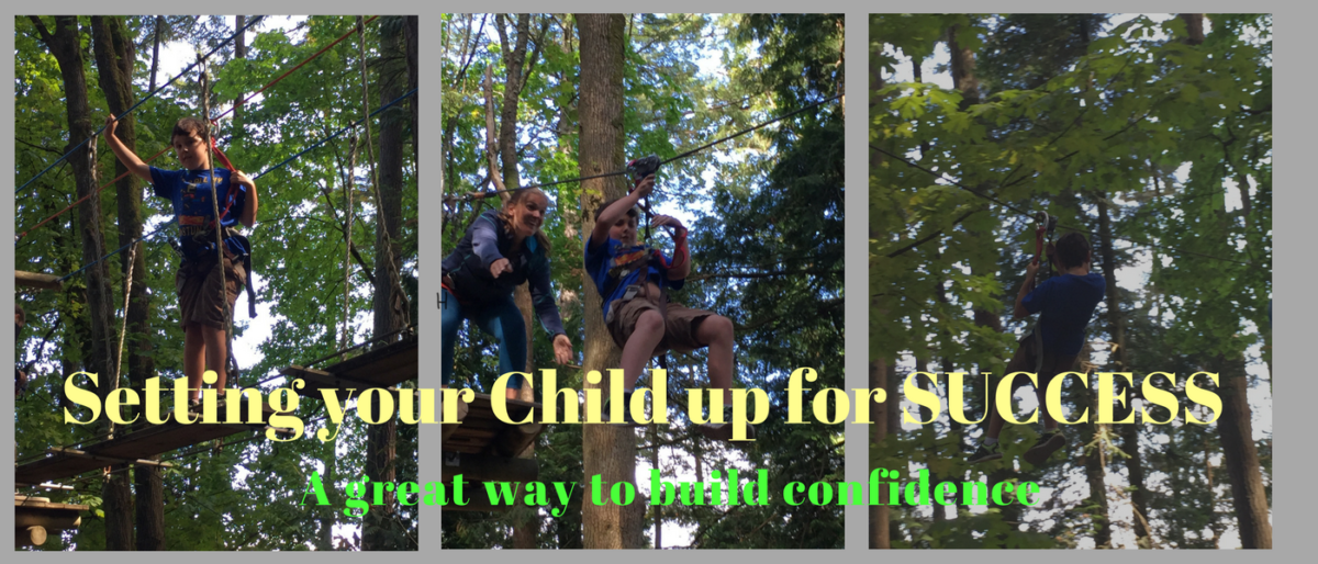 In the picture above we set my client up for success by having one of us at either side of the High Rope Obsticle to help him clip himself in and out of each saftey link along the way. We also prepared him for the feeling of the harness by having a practice one and by watching video’s of the course we were going on.